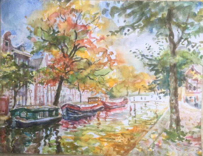 Herfst aan de Raamgracht, 2024, aquarel