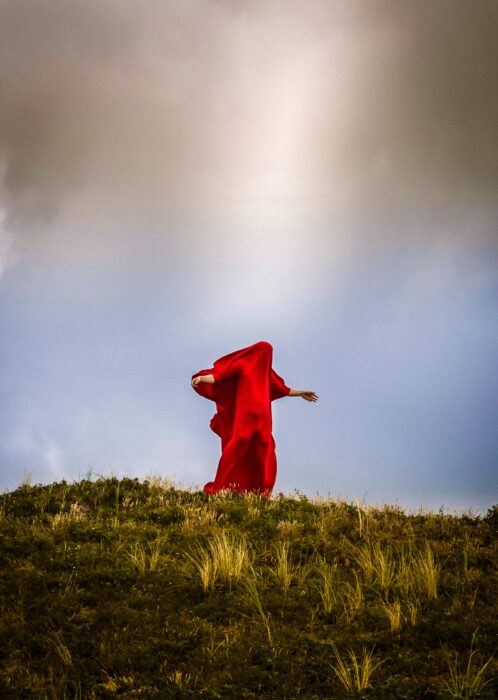 Wrapped in red, I waited to become, 2020, aluminium, houten baklijst