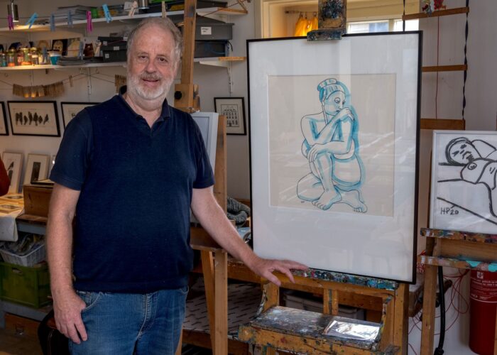 Dit jaar heb ik veel buiten zitten tekenen in de buurt, met name de Waag op de Nieuwmarkt. Verder laat ik tijdens de Open Ateliers ook recente figuratief/abstracte kleurrijke acryl/olie schilderijen zien. (Op de begane grond, dus geen trappen, vlakbij de Nieuwmarkt).